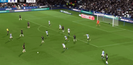 第74分钟曼城发起了一连串攻势,为球队首开纪录的福登,送出一脚斜塞,萨维尼奥在大禁区左侧用一脚爆射轰开了哈德斯菲尔德的球门,将领先的优势扩大到了2球,比赛最后时刻,主队本有机会扳回一球,可惜运气不佳,反击中的远射击中门柱被弹出。