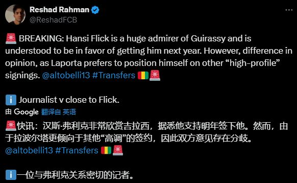 主帅汉斯·弗里克盯上了一个值得关注的目标——多特蒙德前锋吉拉西。据德国《图片报》报道,弗里克认为他是巴萨的锋线合适人选,俱乐部也在密切关注他的动向。然而,拉波尔塔在这一问题上与主帅存在分歧。拉波尔塔认为,如果巴萨要引进一名正印中锋,那应该是一位更具明星效应的大牌球员,而不是现年29岁、职业生涯并非效力于欧洲顶级豪门的吉拉西。