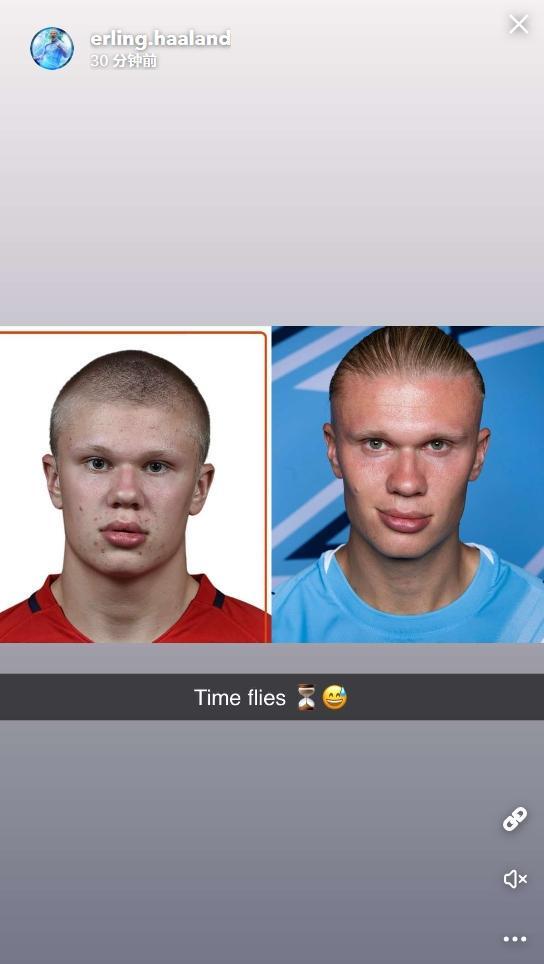 09月26日讯 哈兰德更新Snapchat动态,他晒出了自己U17欧洲杯时的定妆照和如今的对比,并配文:光阴似箭⌛