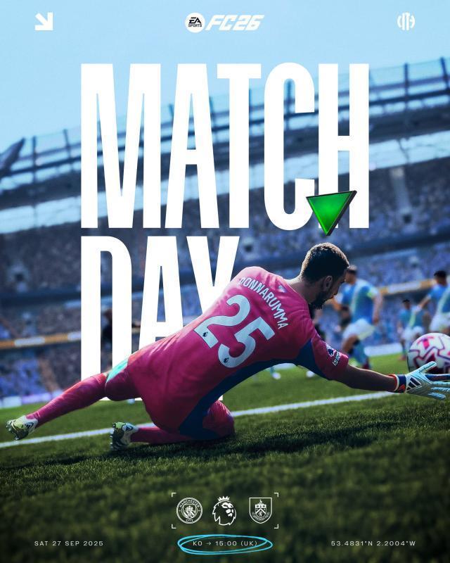 英超联赛第6轮,曼城主场迎战升班马伯恩利。
