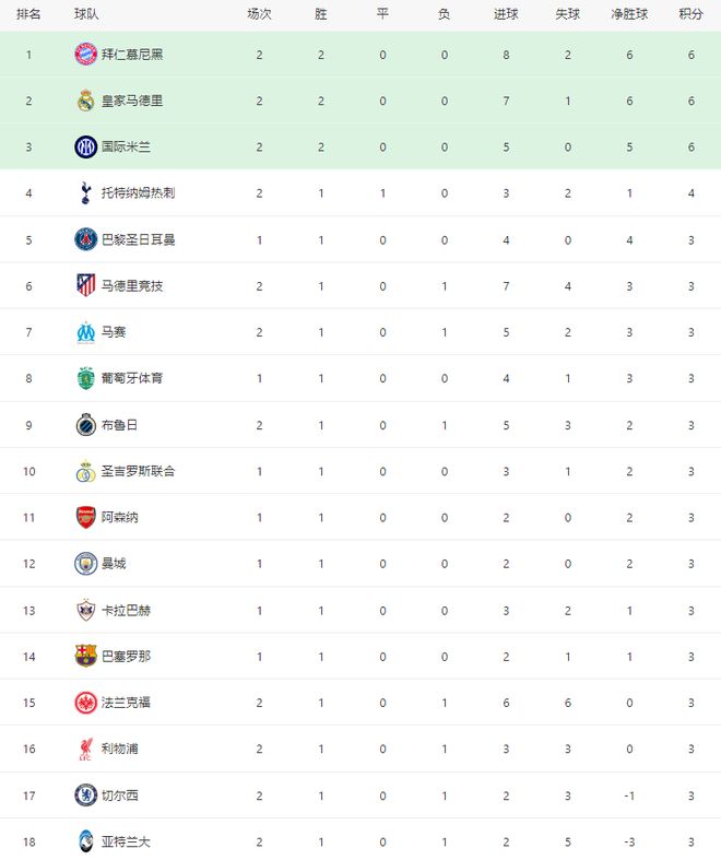 - 欧冠 | 随着皇马50,拜仁51,欧冠最新积分榜:利物浦01输球跌至第16