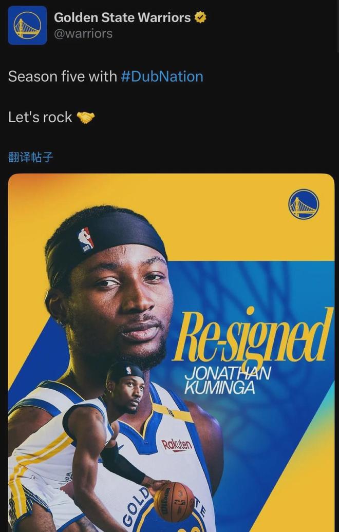 结束了,闹剧彻底结束了。库明加两年4850万美元重新加盟勇士,该合同包含球队选项,并且放弃了交易否决权。于是等到明年一月中旬冷冻期结束后,这哥们就有资格再次被摆上交易货架。