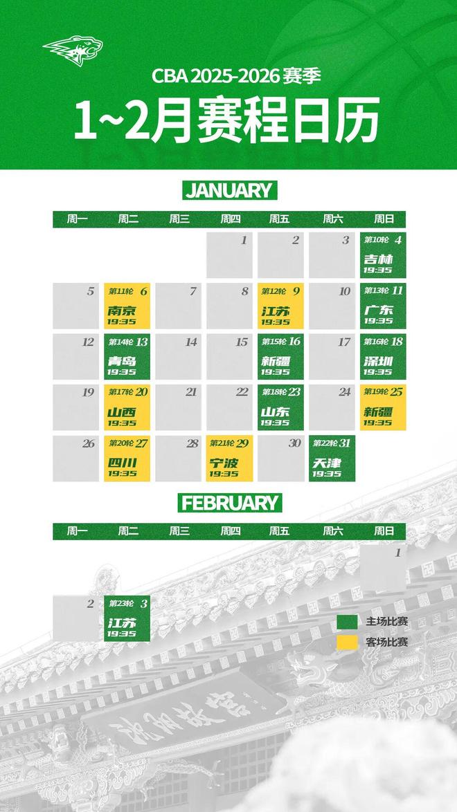 20252026赛季CBA常规赛辽宁本钢队赛程表来了