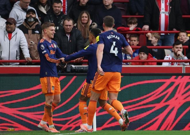纽卡斯尔联排出433阵型。哈维-巴恩斯、沃尔特马德和雅各布-墨菲组成进攻三叉戟。乔林顿、托纳利和吉马良斯组成3中场。丹-伯恩、博特曼、马利克-佳夫和特里皮尔4后卫首发出战。波普担任首发门将。纽卡斯尔联首发阵容总身价高达3.94亿欧元。而布伦特福德首发阵容总身价2.54亿欧元。