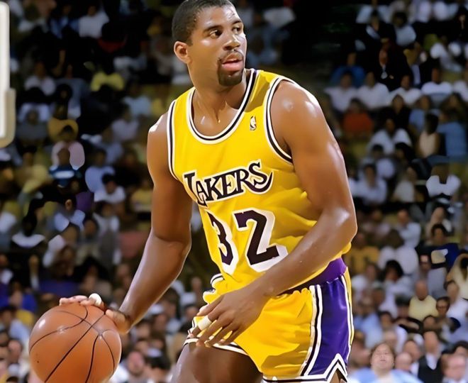 第五名:魔术师约翰逊——从一打到五的全能战士魔术师约翰逊的篮球天赋,首先在他惊世骇俗的身体条件上展现的淋漓尽致。作为一名控球后卫,他却拥有2米06的身高,这完全是小前锋甚至大前锋的身高尺寸。这种“错位”天赋让他在球场上无所不能,成为了NBA历史上第一位真正意义上的全能战士。从一号位到五号位,他都能游刃有余地胜任,这种多功能性在联盟历史上堪称绝无仅有。他的天赋在新秀赛季便展现得淋漓尽致。1980年总决赛,身为新秀的魔术师在球队中锋贾巴尔受伤的情况下,临危受命客串中锋,并狂砍42分、15个篮板和7次助攻,带领球队夺冠,自己也荣膺总决赛MVP。这一壮举至今仍是NBA历史上未被打破的神话。魔术师不仅拥有出色的身体条件,他的传球视野、篮球智商和领导力同样是无与伦比。在他的引领下,洛杉矶湖人队掀起了华丽无比的“Show Time”进攻风暴,重新定义了篮球比赛的观赏性。在13年的职业生涯中,魔术师斩获了5次总冠军、3次常规赛MVP和3次总决赛MVP。若非因为HIV病毒而被迫提前结束巅峰期,以他所展现出的天赋和统治力,完全有资格参与到历史第一人的讨论之中。他的存在,证明了身高与位置的传统界限可以被天赋彻底打破。