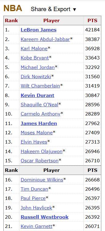 里程碑,威少超越哈弗里切克和皮尔斯升至历史总得分榜第18位