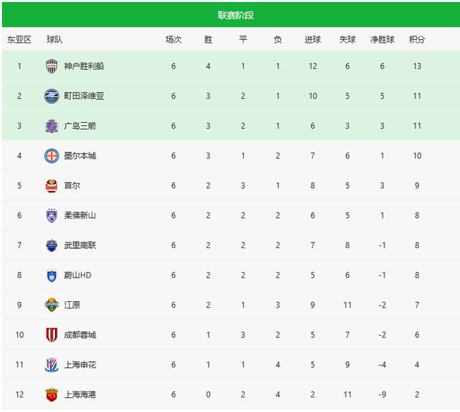 - 中超 | 亚冠精英赛6轮积分榜:中超3队倒数仅2队有出线希望,4队积分上双