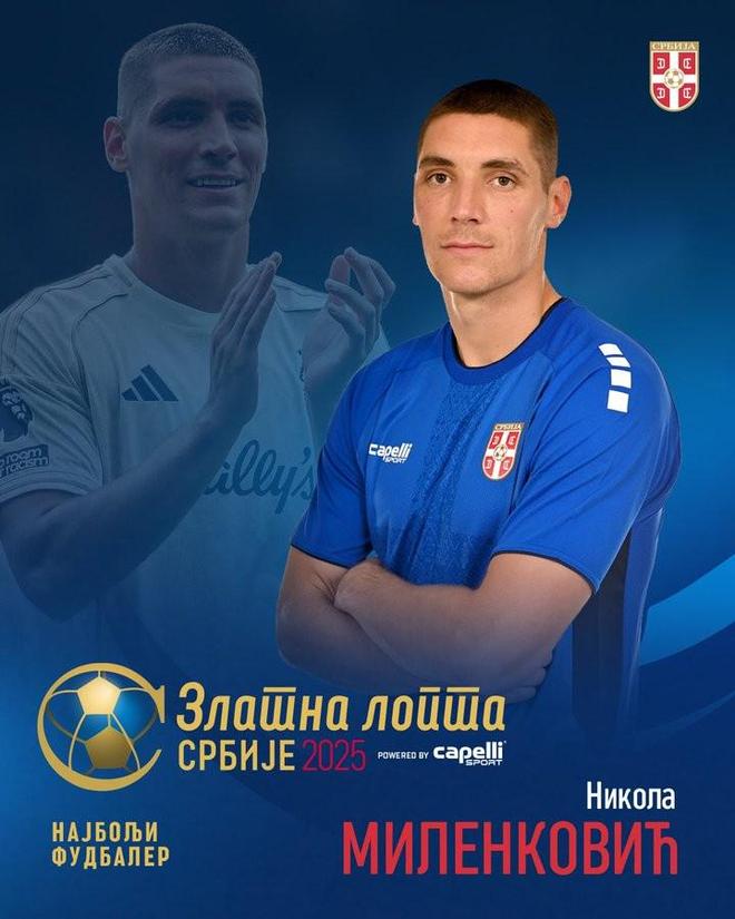 北京时间12月23日,塞尔维亚足协官方宣布,现效力诺丁汉森林的中卫米伦科维奇荣获塞尔维亚2025年金球奖。