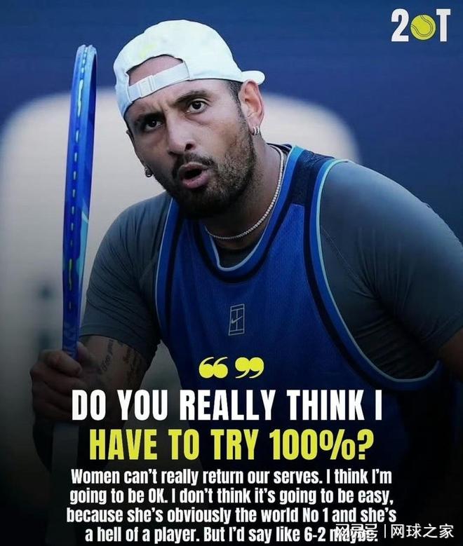 “和尼克这样的人比赛,我真的认为我会赢。”萨巴伦卡在谈及和克耶高斯的这场性别大战时飙出的这番话,直接将外界的期待拉满了。