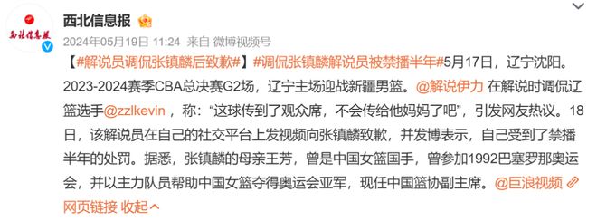 实际上这种事情也不止发生过一次,之前还是咪咕承接CBA网络直播的时候,也有一些解说嘲讽张镇麟全靠他的母亲王芳上位,因此被辽宁球迷投诉并且丢了工作。